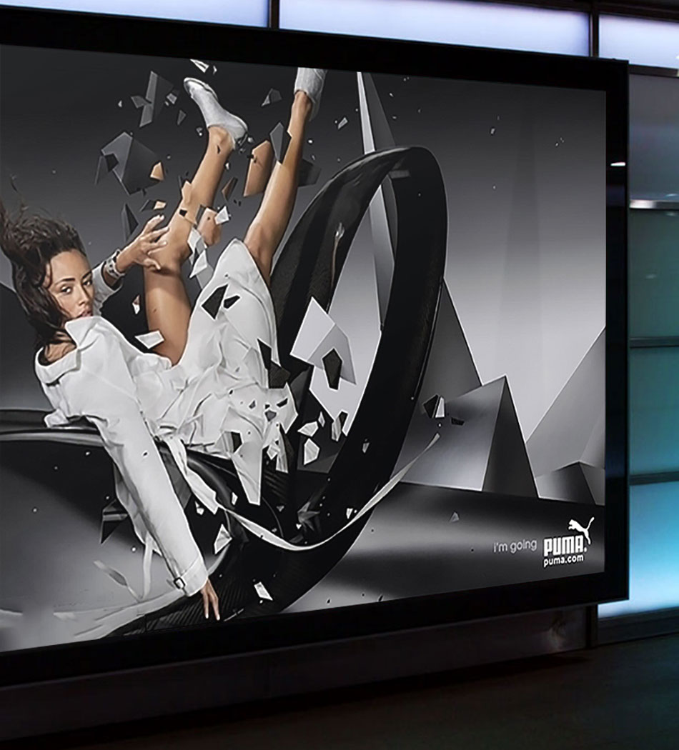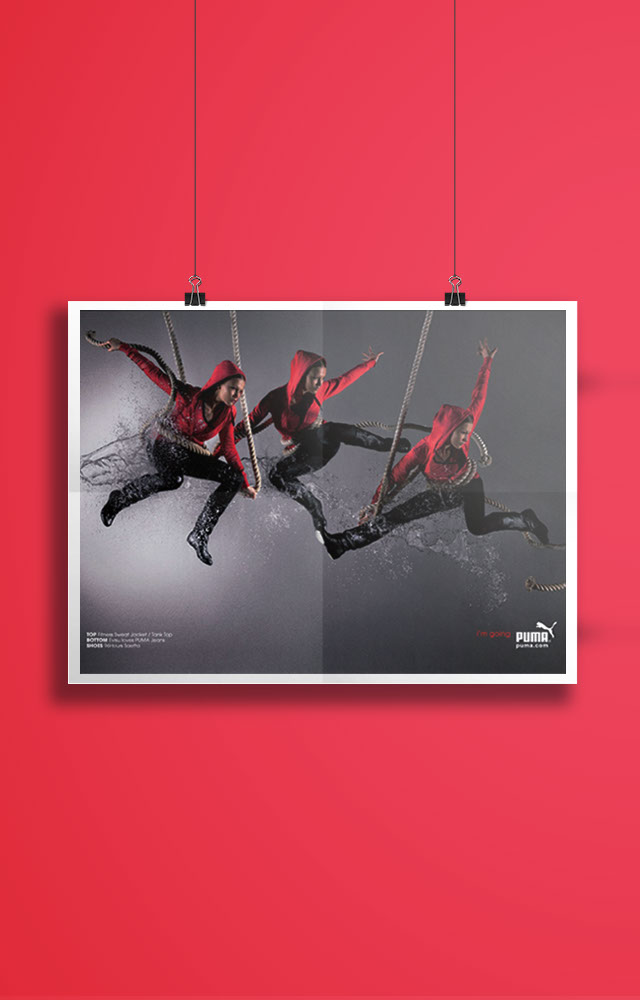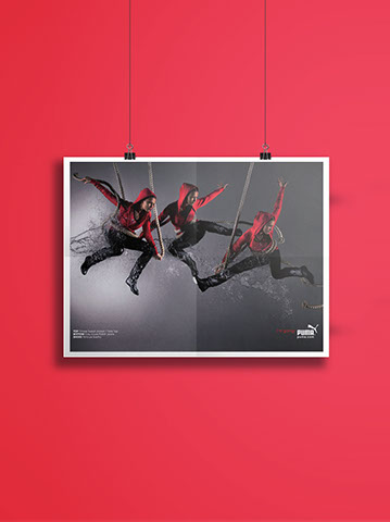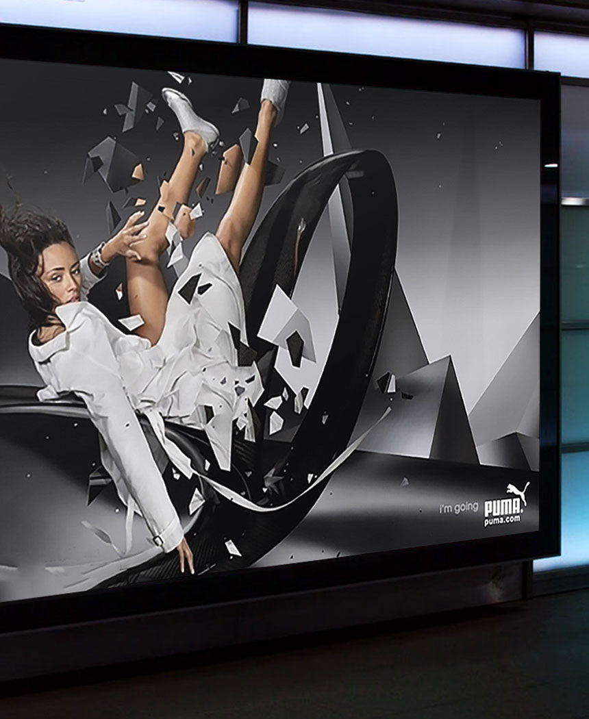 advertising campaign for PUMAs popular „I‘m Going“ series. Similar to previous campaigns, the new ads express movement, athleticism, and progression. Frozen in time, the abstract scenerey adds an intensity and power to the highly composed and sophisticated images.
